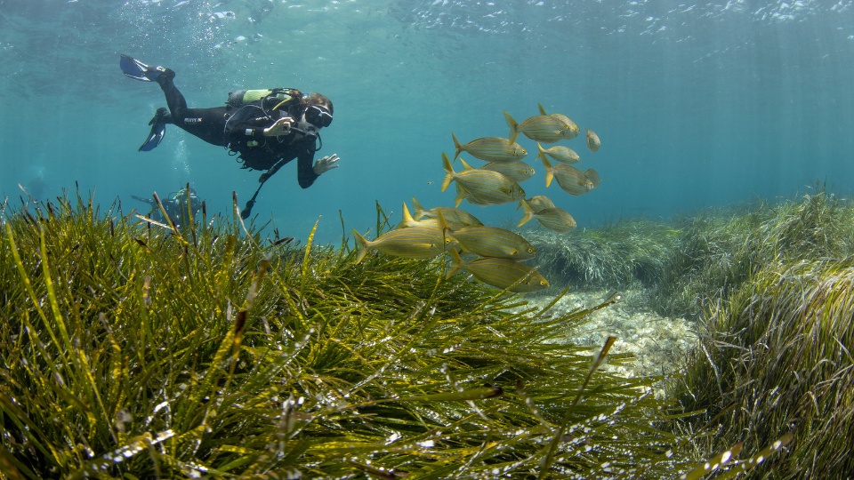 Sumérgete con tu equipo en una jornada única de conservación y buceo con posidonia, el bosque submarino del Mediterráneo.